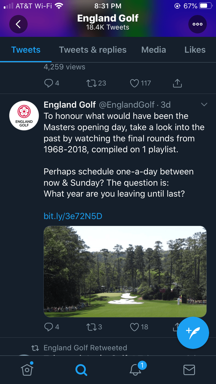 The Masters is considered as one of golfs four major tournaments, and is often considered the most important of them all. The tournament consists of the worlds top players. It is played every year in early April in Georgia at Augusta National. However, because of some unforeseen circumstances, the tournament had to be postponed this year. Considering that Tiger Woods won last year’s tournament, there was a lot of anticipation leading up to this year’s Masters to see if Woods could defend his title. The golf community is in blue spirits because of this unfortunate news. England Golf recognizes the world’s sadness over this, so they wanted to honor the Masters by creating a playlist of videos of all the final rounds of the Masters from 1968-2019. This helps give those people something to substitute the Masters for while waiting until the next one. Although England Golf is no hero for doing something like this, it is worth mentioning how nice it was for them to create something like this for golf fans.